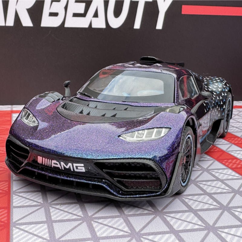 The Mercedes AMG – ONE diecast model is built with uncompromised precision and attention to detail. From its aerodynamic design to the high-quality metallic finish, this scaled-down version boasts an exact reproduction of the original sports car’s dynamic features. You’ll find carefully rendered elements like the signature Mercedes emblem, intricate alloy wheels, and realistic headlights—a tribute to German engineering excellence.